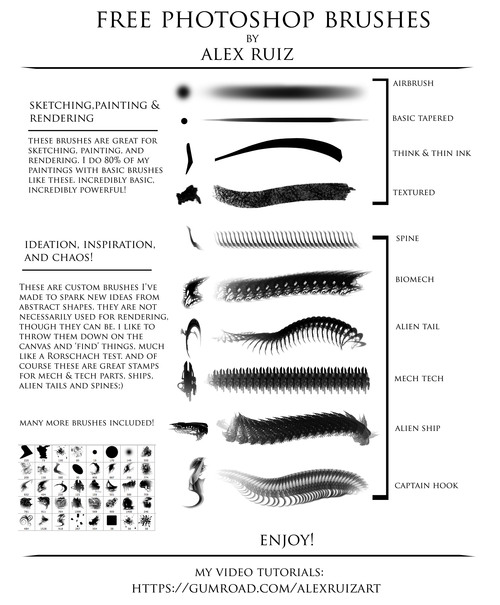 Heres a brush set that contains basic rendering brushes, as well as custom brushes Ive made. Feel free to use them in any of your personal and professional work, and of course I highly encourage you to make your own;)