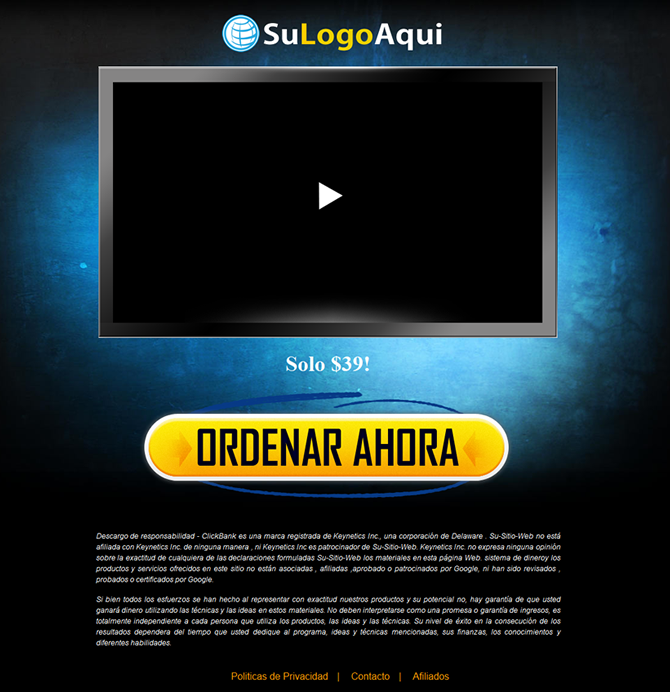Pagina de video ventas, esta plantilla es ideal para vender productos digitales en internet como libros electronicos, video cursos, audios, softwares etc.