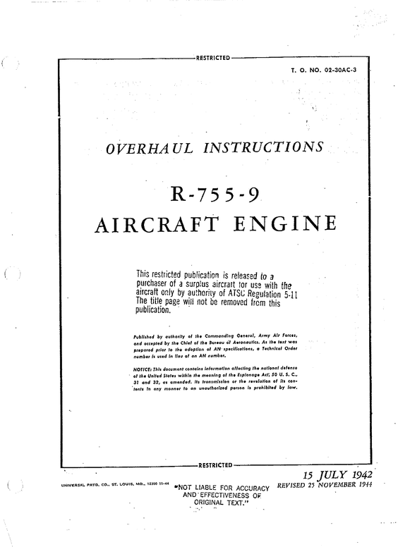 Jacobs aircraft engine R755-9 radial overhaul manual