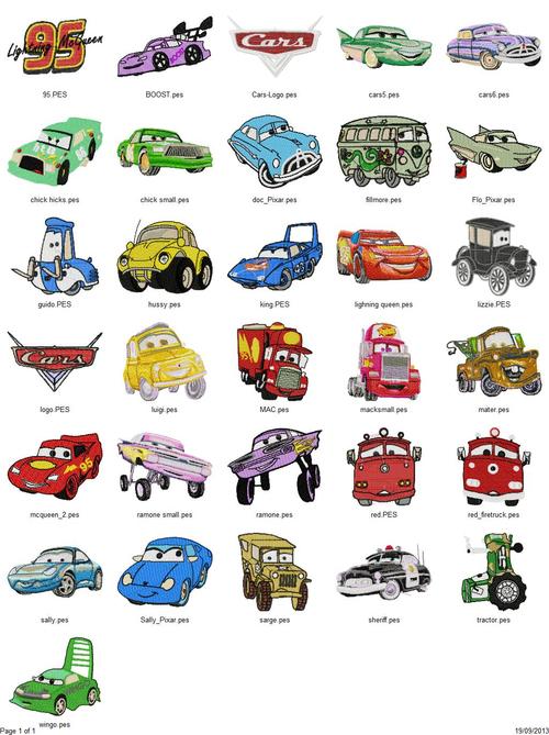 Set of 31 designs from the DISNEY PIXAR CARS MOVIES 1 and 2. Designs come in pes format, other formats email us at tradebit@https://www.tradebit.com after purchase and we will convert and send