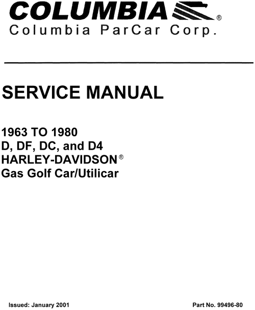 Harley-Davidson Gas Golf Cart Service/Repair and Parts Manual