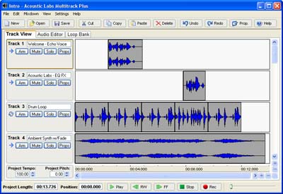 Description of vendor: The Acoustic Labs Multitrack Plus is a powerful and versatile multitrack recorder, editor, sequencer and mixer allowing users to create professional quality audio productions. Audio loop creation, sequencing and mixing are also fully supported. The multitrack recording capabilities are perfect for producing music and a variety of other audio production needs. In addition to full support of audio loops the Acoustic Labs Multitrack Plus also includes realtime effects, highly precise editing capabilities, drag and drop technology for sequencing audio snippets, and many other great features.