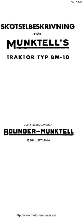 Skötselbeskrivning till Munktell BM 10 på svenska.