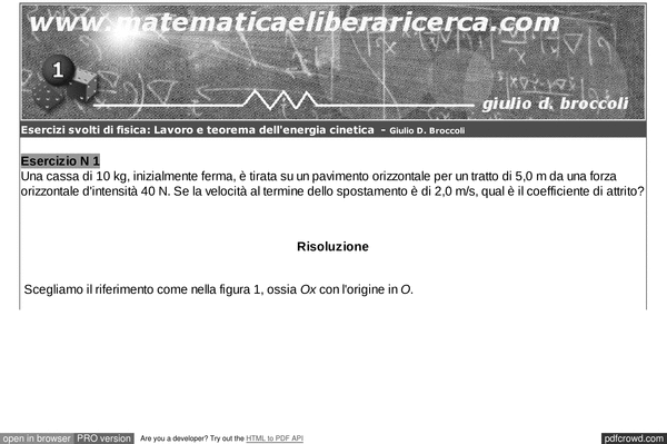 Una cassa di 10 kg, inizialmente ferma, è tirata su un pavimento orizzontale per un tratto di 5,0 m da una forza orizzontale dintensità 40 N. Se la velocità al termine dello spostamento è di 2,0 m/s, qual è il coefficiente di attrito?