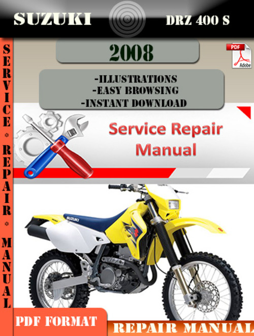 This is a complete Suzuki DR Z 400 S 2008 Service and Repair Manual ! It contains evrey information and detalis you need to help you not only fix your vehicle problems, but also maintain your vehicle good functioning for future use ! This manual is also a very reliable source of information that will make you, in time know more and more about your vehicle and how to prevent future problems from happening !!