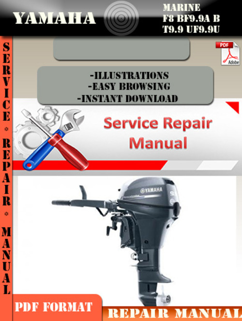 This is a complete Yamaha Marine F8 BF9.9A B T9.9 UF9.9U Service and Repair Manual ! It contains evrey information and detalis you need to help you not only fix your vehicle problems, but also maintain your vehicle good functioning for future use ! This manual is also a very reliable source of information that will make you, in time know more and more about your vehicle and how to prevent future problems from happening !!