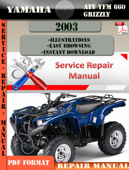 This is a complete Yamaha ATV YFM 660 Grizzly 2003 Service and Repair Manual ! It contains evrey information and detalis you need to help you not only fix your vehicle problems, but also maintain your vehicle good functioning for future use ! This manual is also a very reliable source of information that will make you, in time know more and more about your vehicle and how to prevent future problems from happening !!