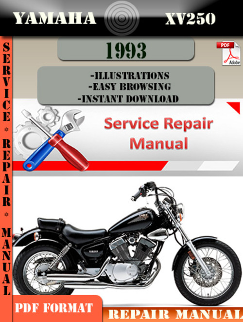 This is a complete Yamaha XV250 1993 Service and Repair Manual ! It contains evrey information and detalis you need to help you not only fix your vehicle problems, but also maintain your vehicle good functioning for future use ! This manual is also a very reliable source of information that will make you, in time know more and more about your vehicle and how to prevent future problems from happening !!