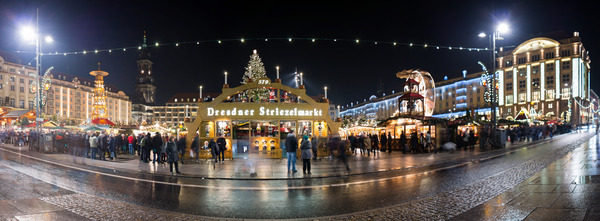 panorama of Christmas market in Dresden Striezelmarkt in 2013