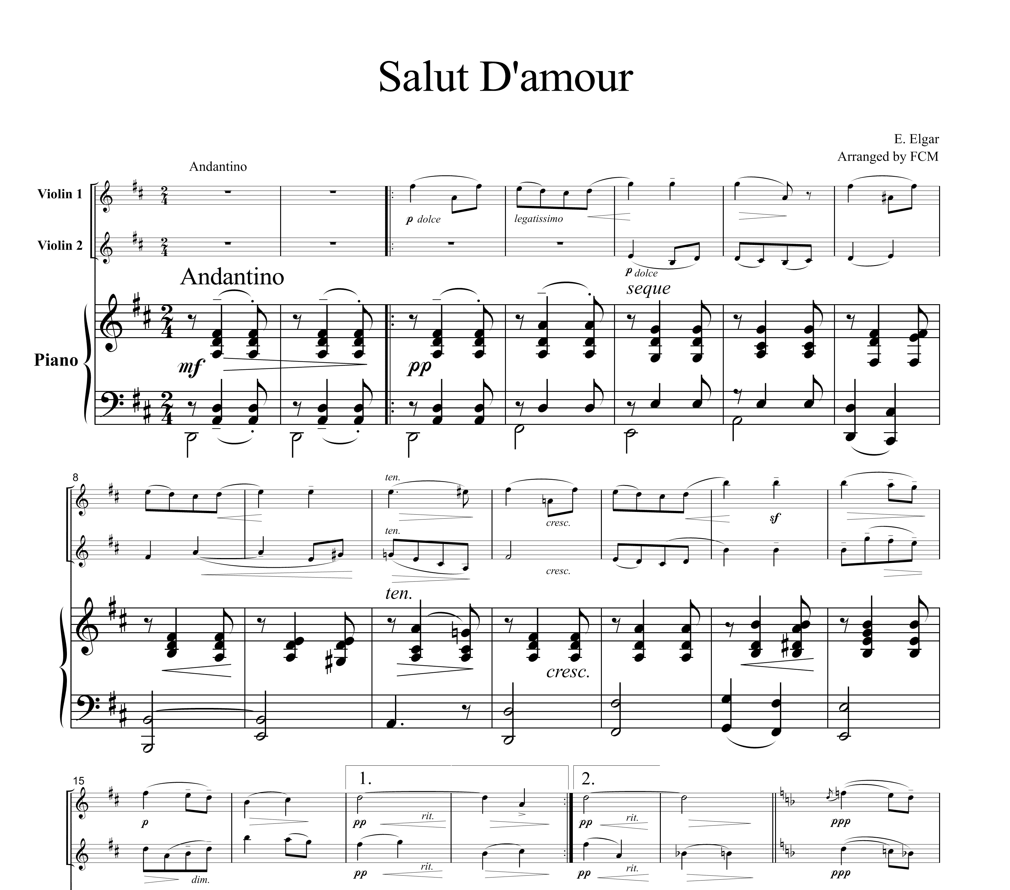Elgar Salut D'amour, for 2 violins & piano, VN206
