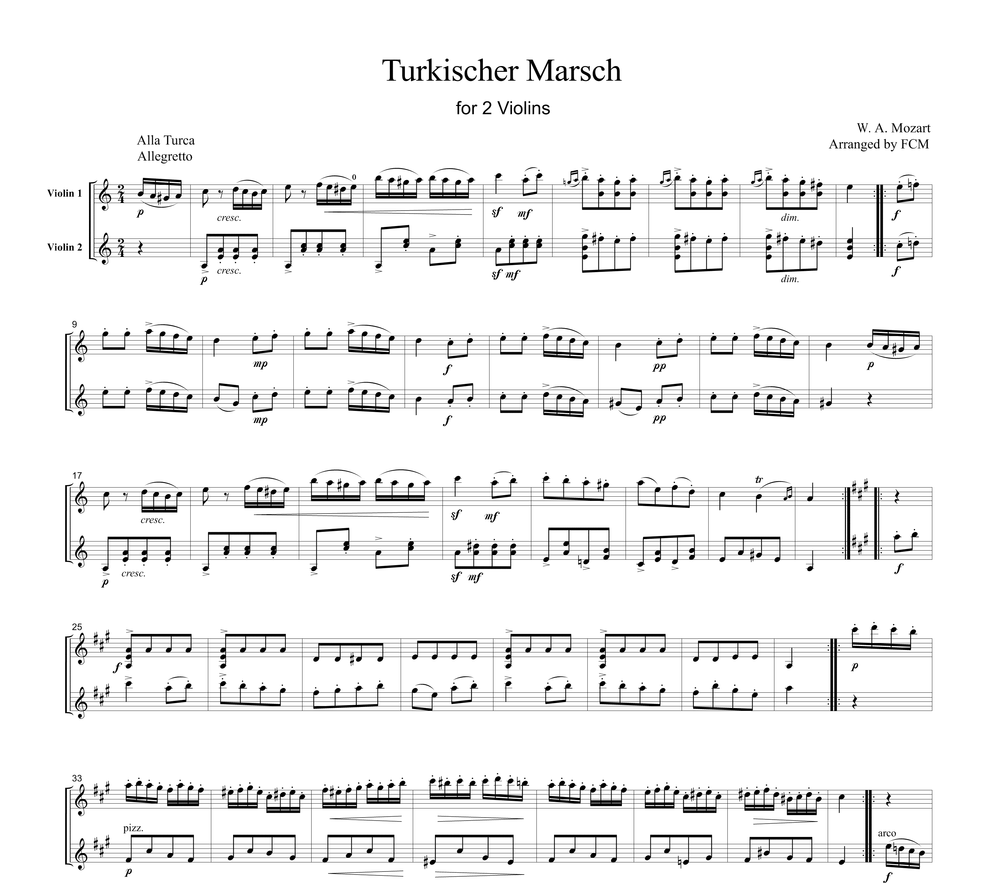 Mozart Turkischer Marsch, for 2 violins, VN207