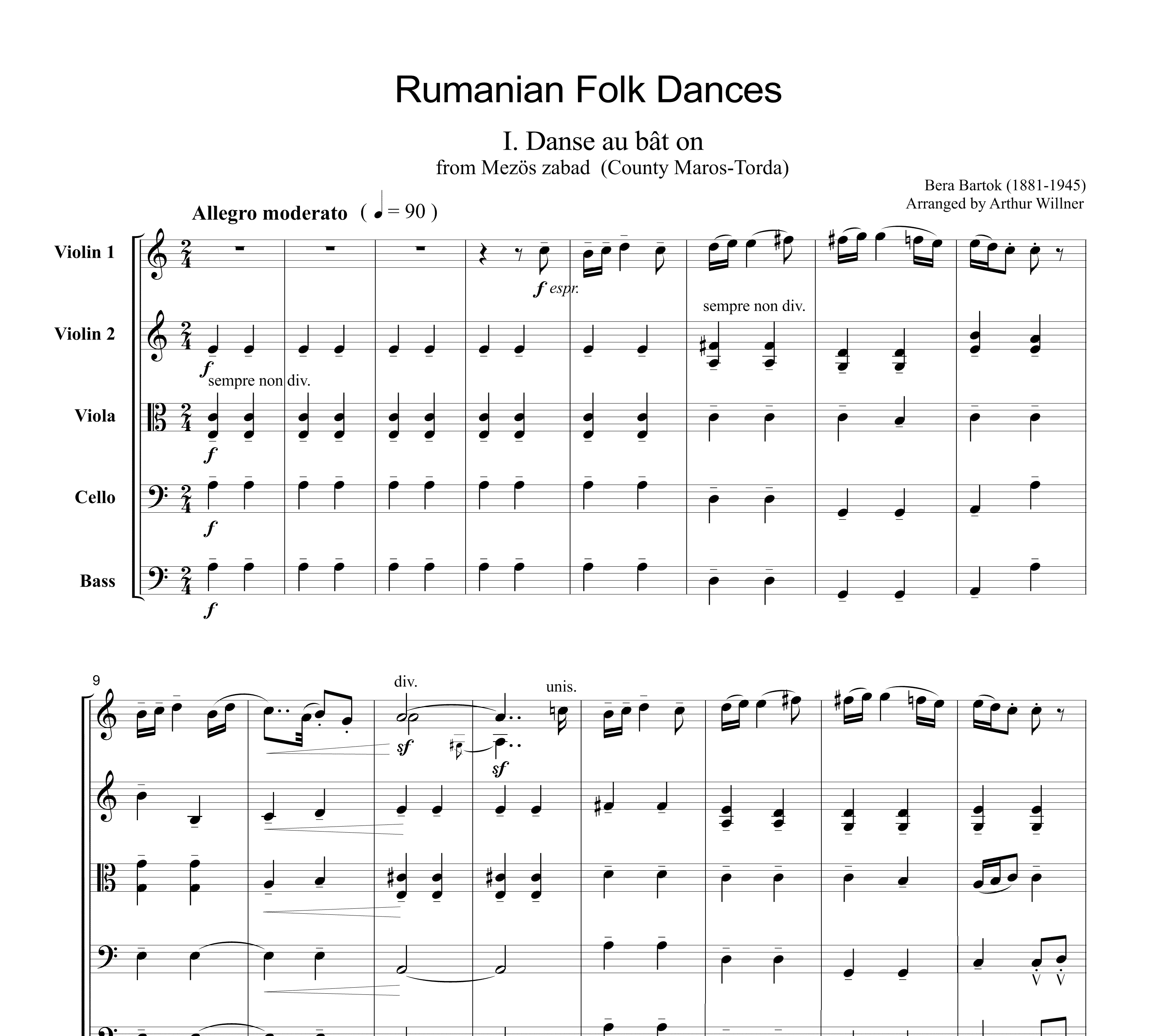 Bartok Rumanian Folk Dances, for string orchestra, SB010
