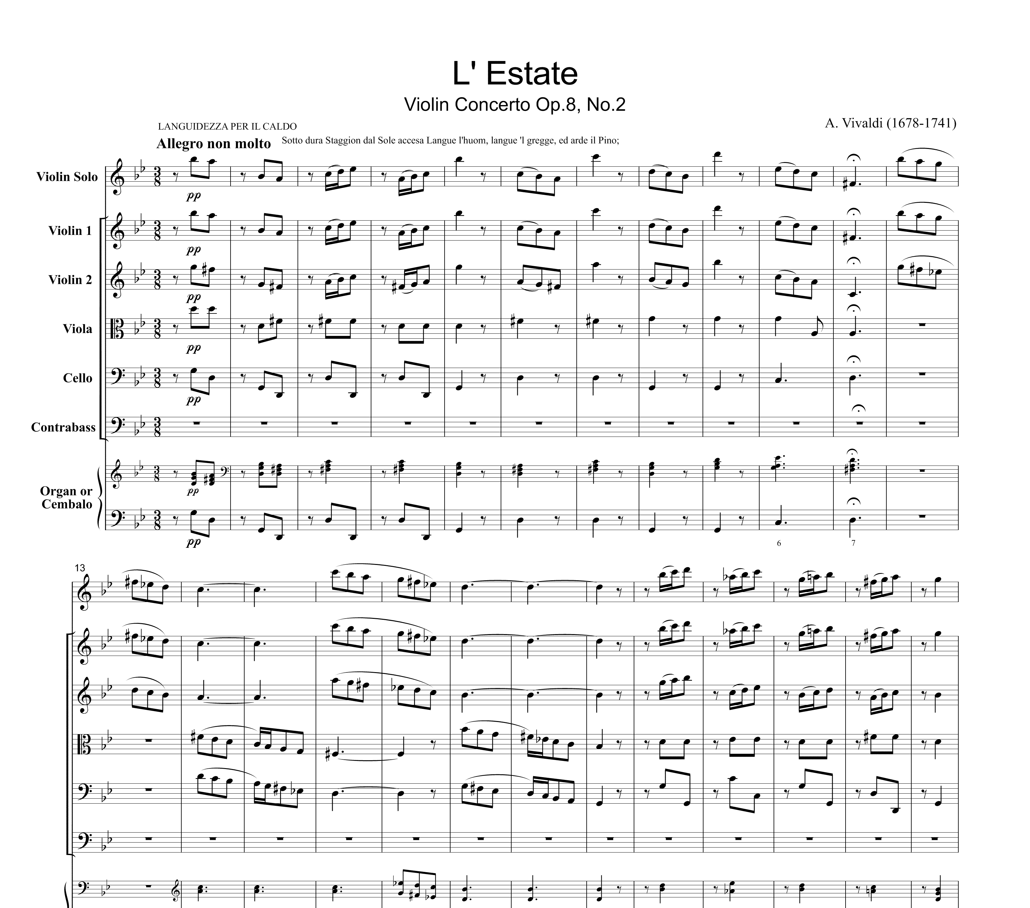 Vivaldi L' Estate Violin Concerto Op.8, No.2, for string orchestra, SV002
