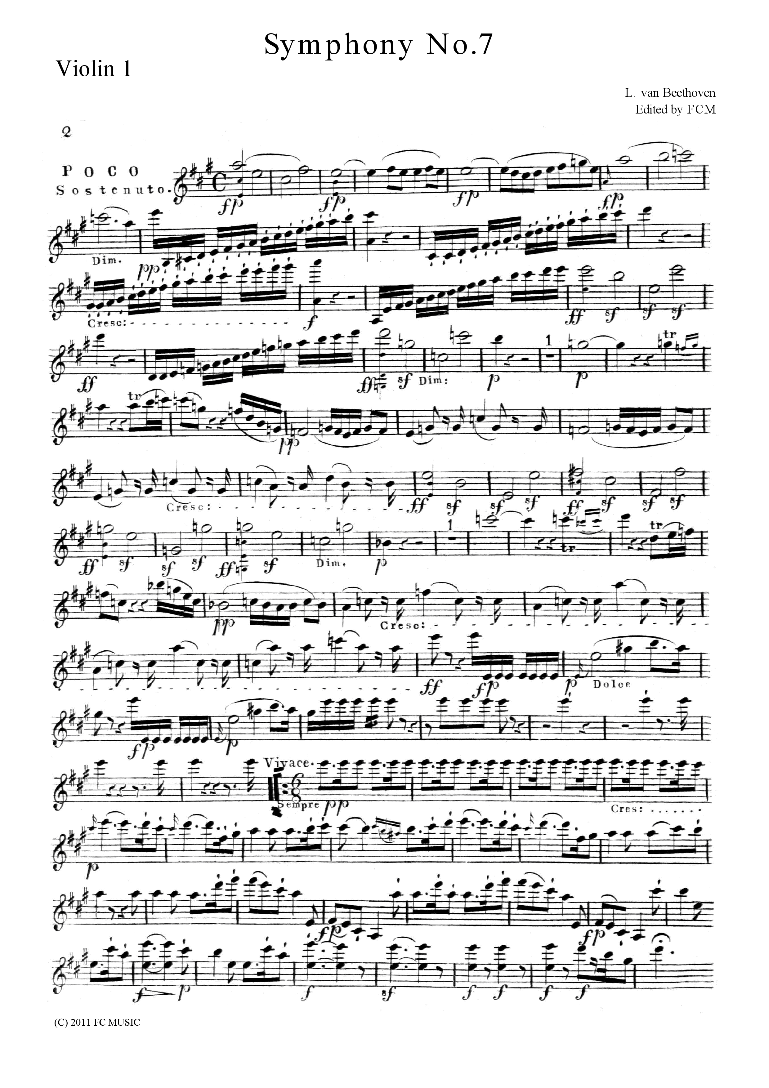Beethoven Symphony No.7, all mvts.(handwriting parts published around 1800), for string quintet, CB091