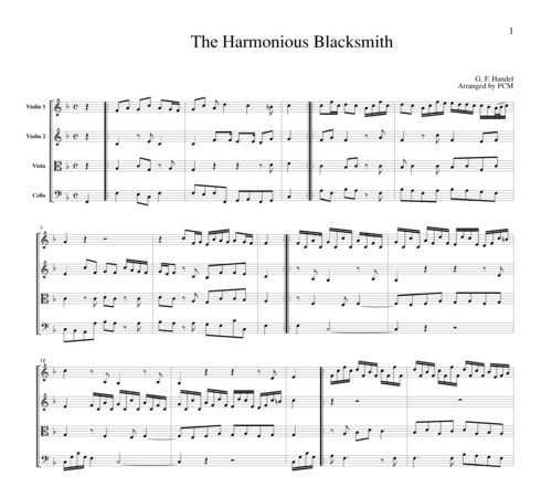 Handel The Harmonious Blacksmith, for string quartet, CH112