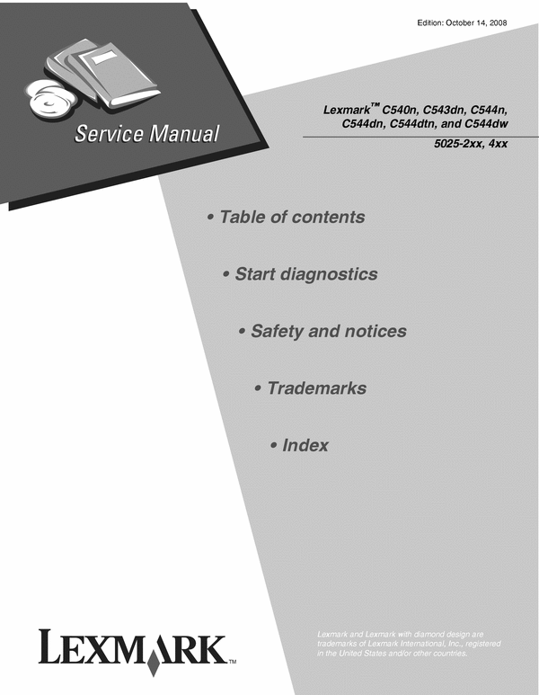 This is official Lexmark C540 Series Service Manual as used by professional technician to maintain and repair the Lexmark C540 printer.