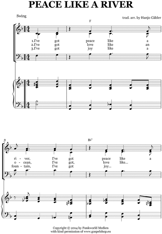 Wellknown Gospelsong Peace like a river Sheet Music for Piano.