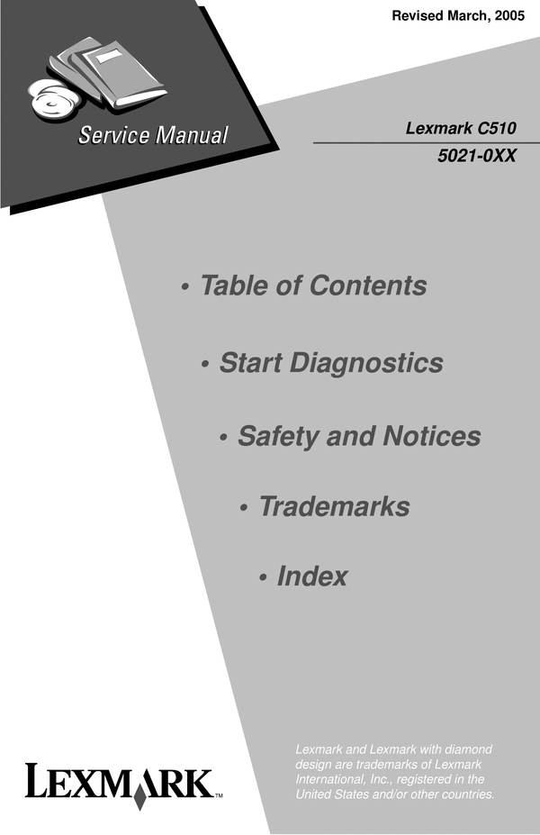 This is official Lexmark C510 Service Manual as used by professional technician to maintain and repair the Lexmark C510 laser printer.