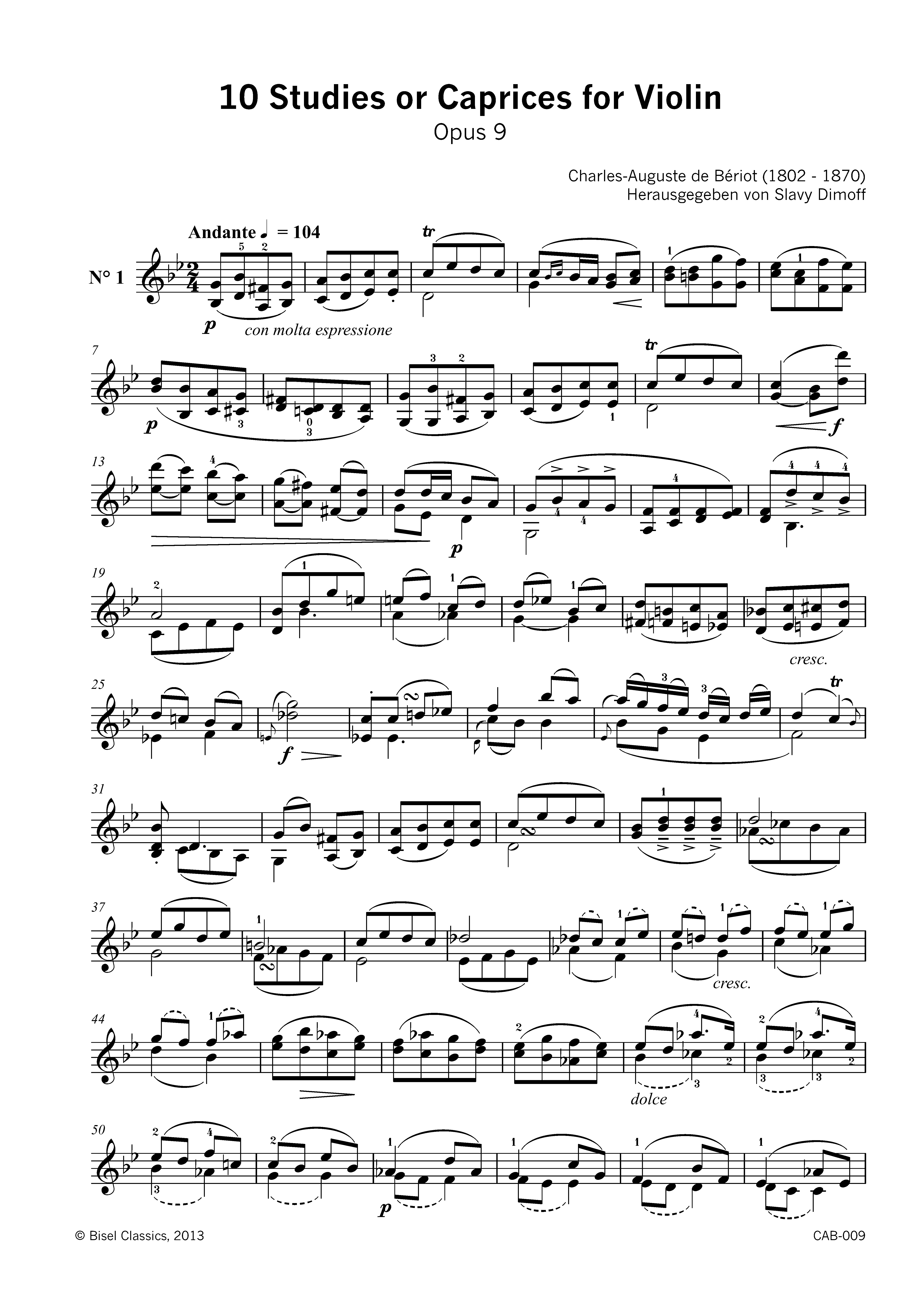 Beriot: 10 Studies or Caprices for Violin (Solo), Opus 9