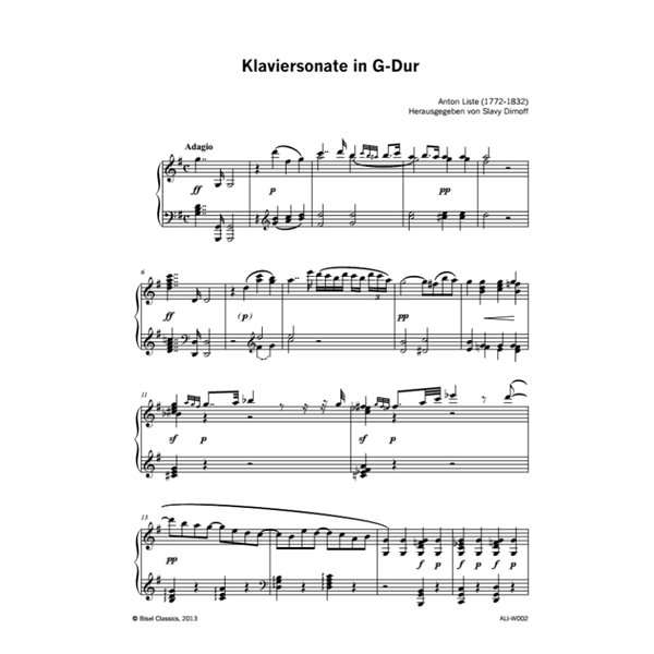 The Sonata in G Major was composed in one single movement and displays Listes fondness for experiments in form. The composition is transparent and light in style, yet does not lack suspense due to frequent use of contrasts. The expressive use of dynamic contrasts throws light onto the emotional part of the composers personality, who found his second home in Zurich. The work was issued in 1804 as part of the series Répertoire des Clavicinistes by the editor Hans Georg Nägeli, who was Listes patron in that particular period. Not only does it represent a special piece of Swiss music history, but invites rediscovery of its unique composer.