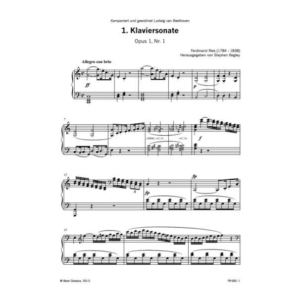 The first of two sonatas was dedicated to Beethoven his great friend and mentor and was composed just a year after he was called up to join a French army garrison at Koblenz in 1805. The work is conventionally set in four movements and shows the influence of Classical style through the filter of Beethoven but more than this, it amounts to a personal statement of veneration from a devoted student to a valued and supportive teacher.