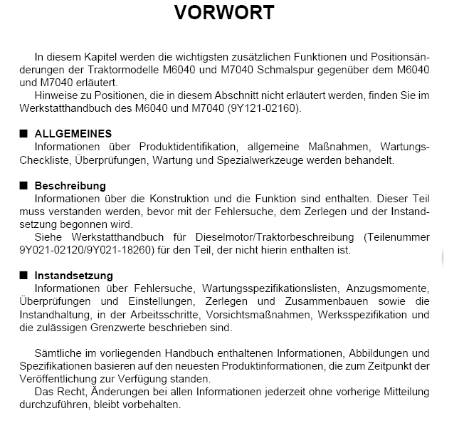 Kubota M6040 M7040 Narrow Service Workshop Manual(GERMAN)