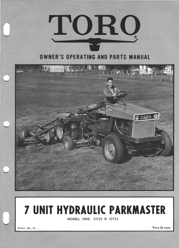 Toro 7 unit park master mower parts manual. 1958,