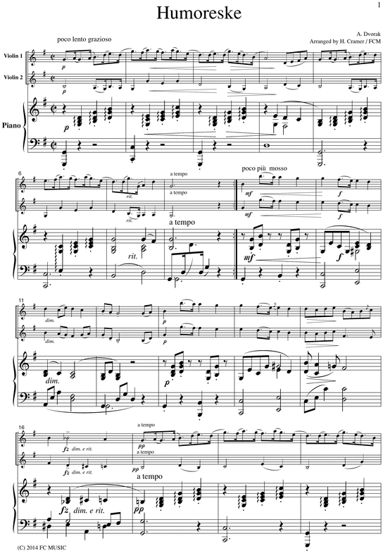Dvorak Humoreske, for 2 Violins & Piano, VN211