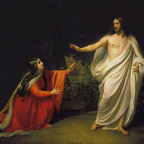Noli me tangere, meaning "don't touch me" / "touch me not", is the Latin version of words spoken, according to John 20:17, by Jesus to Mary Magdalene when she recognizes him after his resurrection
