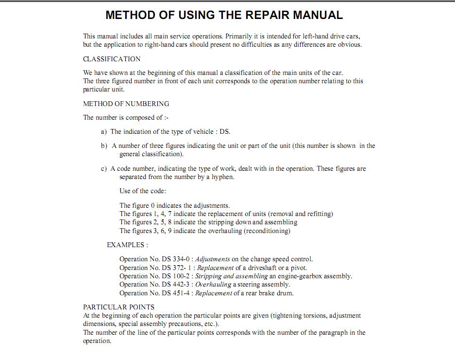CITROEN DS19 1955-1976, SERVICE, REPAIR MANUAL