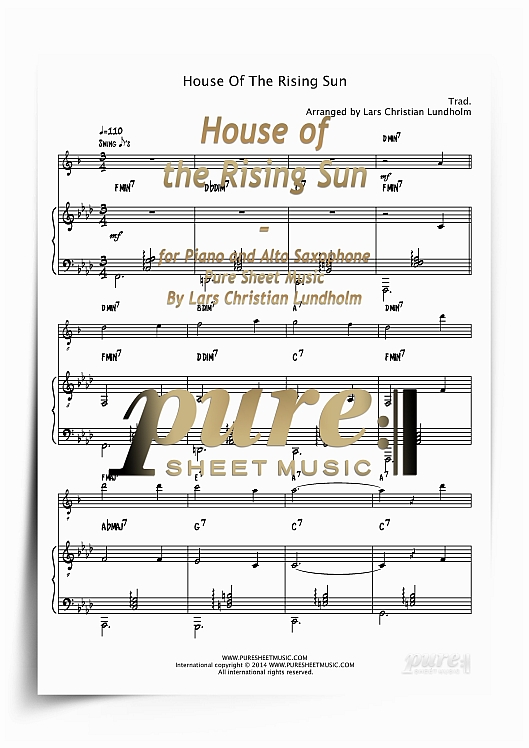 Please download PDF sheet music sample of House of the Rising Sun for Piano and Alto Saxophone above
