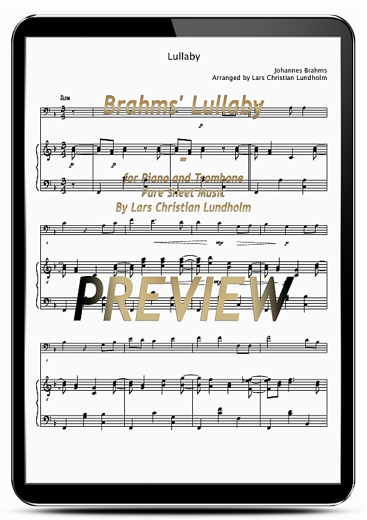 Simply search for "Brahms‘ Lullaby for Piano and Trombone (PDF file), Pure Sheet Music arranged by Lars Christian Lundholm" if you are looking for the print friendly version of this sheet music.