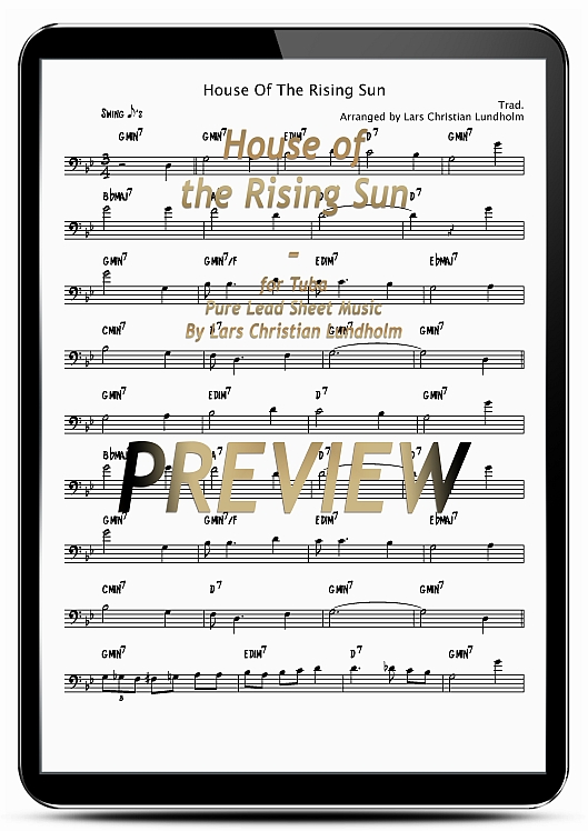 Pure Sheet Music Ebook; House of the Rising Sun; Tuba; Anonymous; Folk Music; Unknown Year; Nina Simone; Sinead O‘Connor; Blues, Sentimental; Folk Song, Song; Traditional, Bob Dylan, Jazz; Easy; English; UK; Medium; Solo Score; Lars Christian Lundholm; sheet music; arrangement; pdf; download; music ebook; Folk Music lead sheet music for Tuba; Easy level lead sheet music for Tuba; Medium tempo lead sheet music for Tuba; Tuba lead sheet music from the Unknown Decade; Tuba lead sheet music from the Unknown Century; Tuba lead sheet music by anonymous composer