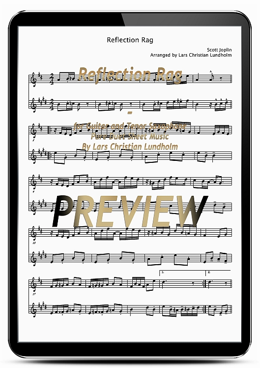 Please download Ebook (EPUB file) sheet music sample of Reflection Rag for Guitar and Tenor Saxophone above