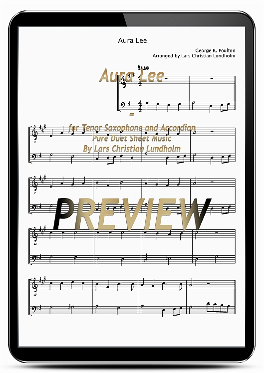 Please download Ebook (EPUB file) sheet music sample of Aura Lee for Tenor Saxophone and Accordion above