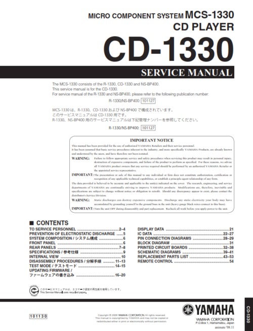 Yamaha cd-1330 cd1330 mcs-1330 mcs1330 service manual