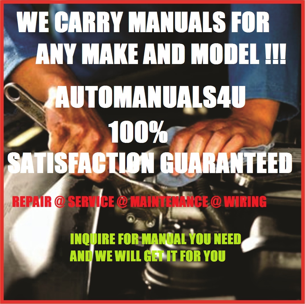 Fixing problems in your vehicle is a do-it-approach with the Auto Repair Manuals as they contain comprehensive instructions and procedures on how to fix the problems in your ride. Also customer support over the email , and help to fix your car right the first time !!!!! 20 years experience in auto repair and body work. Auto Repair Manuals can come in handy especially when you have to do immediate repair to your car. The durability of your vehicle is unquestionable but you also know that no matter how tough they are, constant use can cause them to deteriorate. When this happens, and ultimately it will, you will have to replace them. Some car parts are very simple to mount and do not require professional help. By having a trusty repair manual you not only save money but you also get to experience the fun of do-it-yourself projects. A repair manual comes with comprehensive details regarding technical data, diagrams, a complete list of car parts and pictures. Even the most novice car mechanic can easily follow the step-by-step guides which are made simple by the illustrations and drawings. You can find a complete list of accessories that can further enhance the performance of your engine. I included couple basic screen shots from manual this is sample screen shots , just for you to see how it looks. The screen shots can be from other model of the car as they are just for you to know quality of manuals.