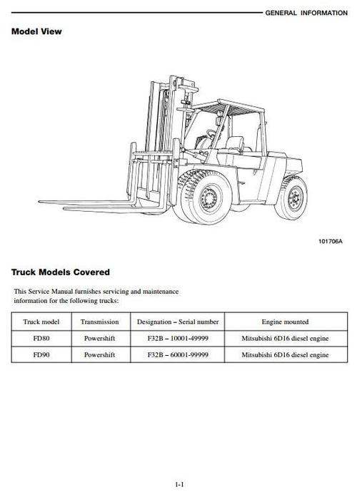 Mitsubishi Diesel Forklift Truck FD80 (F32B-10001-49999), FD90 (F32B-60001-99999) Workshop Service Manual