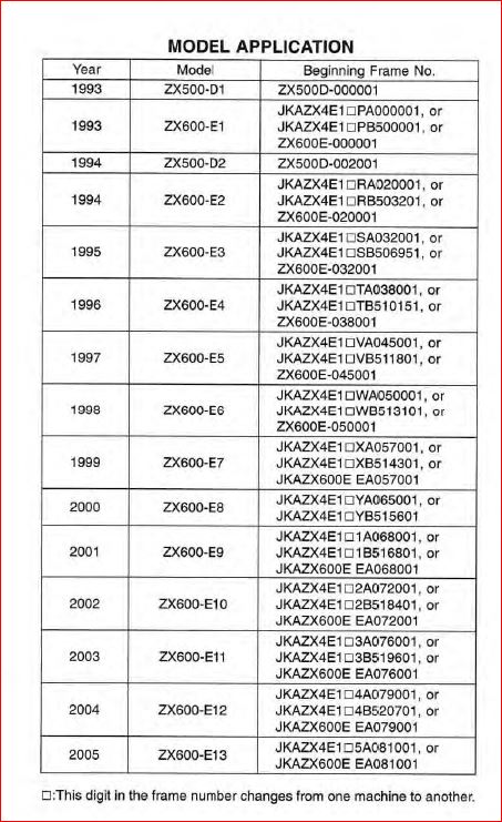 Kawasaki Ninja ZX-6, ZZR600, ZZR500 service manual.