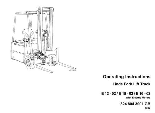 Original Illustrated Factory Operating and Maintenance Instructions for Linde Electric Forklift Truck E-Series Type 324-02.