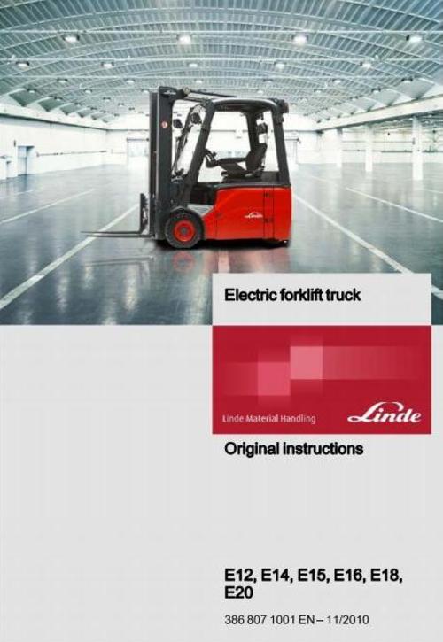 Linde Electric Forklift Truck 386 series: E12, E14, E16, E18, E20 Factory Intructions ( User Manual )