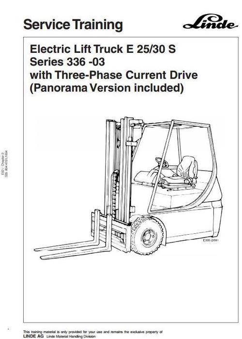Linde Electric Forklift Truck 336-03 Series: E25 S, E30 S (Included Panorama version) Workshop Service Manual