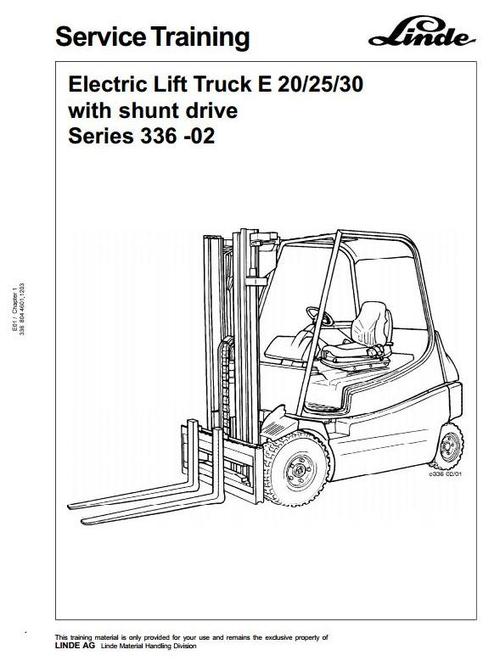 Linde Electric Forklift Truck E20, E25, E30 Series 336-02 Service Training Manual
