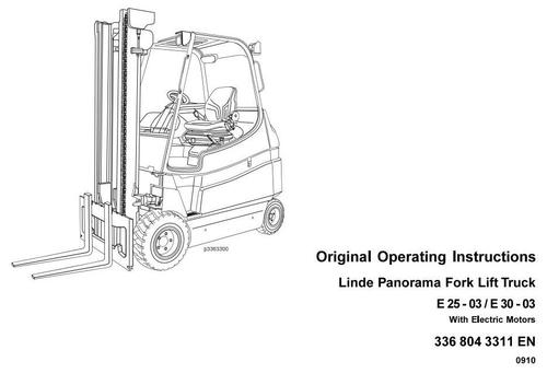 Original Illustrated Factory Operating and Maintenance Instructions for Linde Electric Forklift Truck 336-03 Panorama Series.