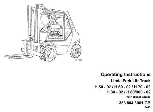 Linde Diesel Forklift Truck 353-02 Series: H50, H60, H70, H80 Operating Manual (User Manual)