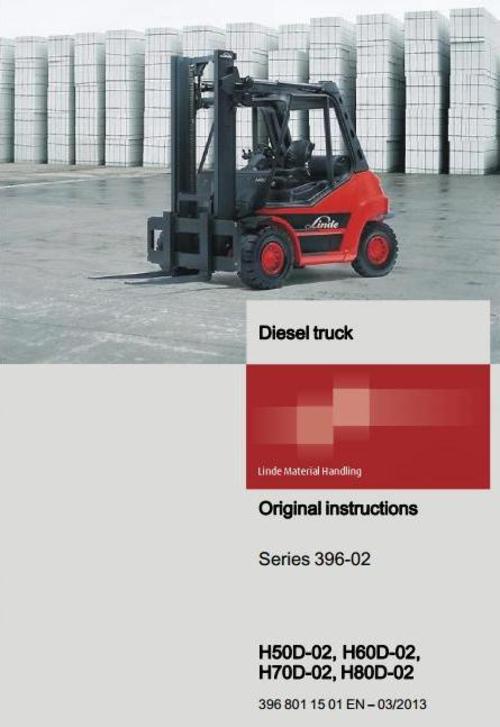 Linde Diesel Forklift Truck H-Series Type 396-02: H50D-02, H60D-02, H70D-02, H80D-02 Operating Instructions (User Manual)