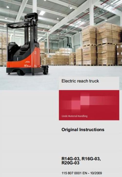 Linde Electric Reach Truck Type 115-03: R14G-03, R16G-03, R20G-03 Operating Instructions (User Manual)