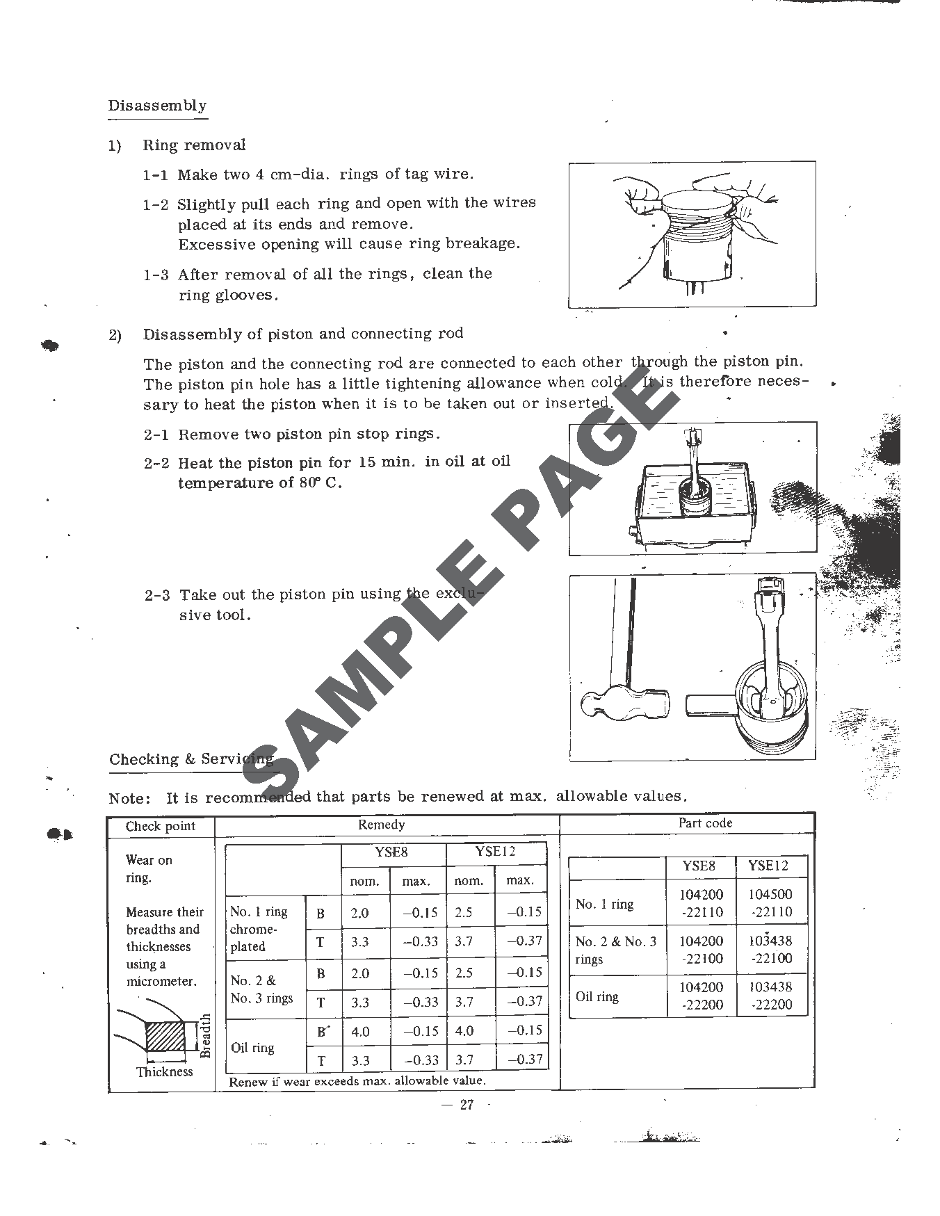 This is a very comprehensive manual (DOWNLOAD in SCANNED PDF format) for YANMAR YSE YSM 8 12 MARINE DIESEL ENGINE, Features detailed exploded views. This is the same manual that technicians use to fix your engines. Manual covers detailed and complete step-by-step written procedures with pictures and diagrams, fully printable-selected pages or whole manual, illustrated. So, you will not be disappointed. This is the manual for Repairs, Maintenance & servicing.