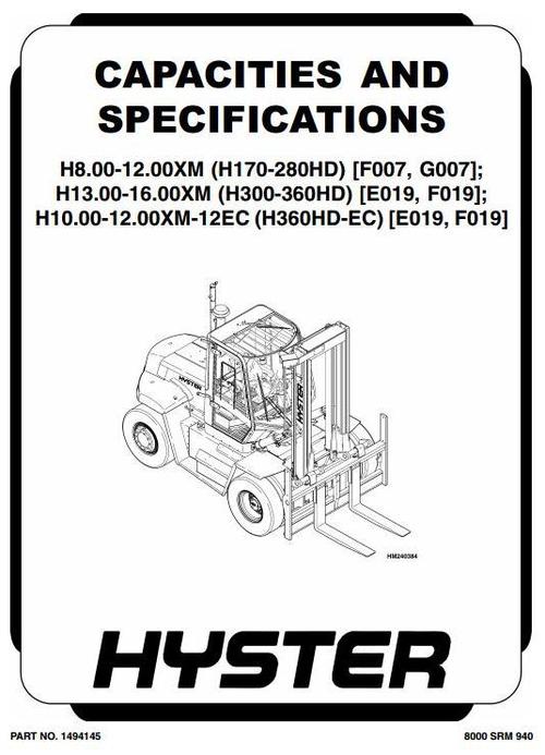 Original factory manuals for Hyster Forclift Trucks, contains high quality images, circuit diagrams and instructions to help you to operate, maintenance and repair your truck. All Manuals Printable, contains Searchable Text and Navigation Bookmarks