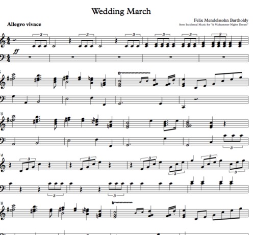 Piano Sheet Music for the Wedding March of Felix Mendelsohn Bartholdy